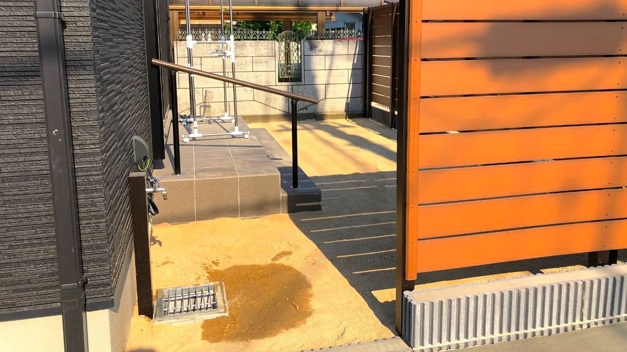 タイルテラスも施工しており、家から庭への上り下りが楽になっています。このテラスは、耐久性があり、掃除もしやすいのが魅力です。また手すりも設置し、安全面にも配慮しました。とくに高齢者や小さな子どもがいる家庭にとって、手すりは重要な要素となります。