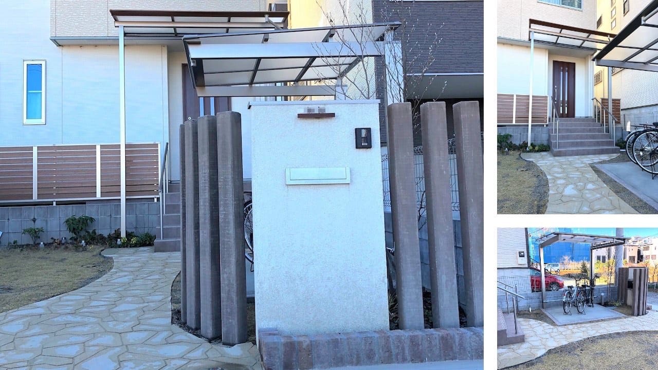 外構リフォーム工事例【自転車置き場を門柱裏につくった施工例です】